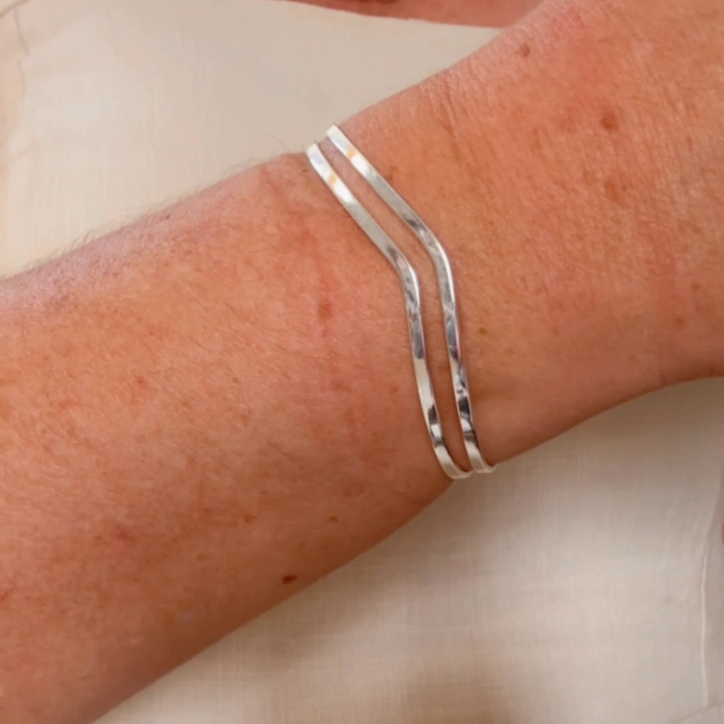 Este bracelete ajustável com design de dois aros em formato V é uma peça elegante e versátil. O acabamento liso e polido reflete um brilho sofisticado, conferindo um toque moderno e refinado ao visual. Com aproximadamente 1 cm de espessura e 6 cm de diâmetro ajustável, ele se adapta facilmente a diferentes tamanhos de pulso, sendo ideal para quem busca conforto e praticidade sem abrir mão do estilo.