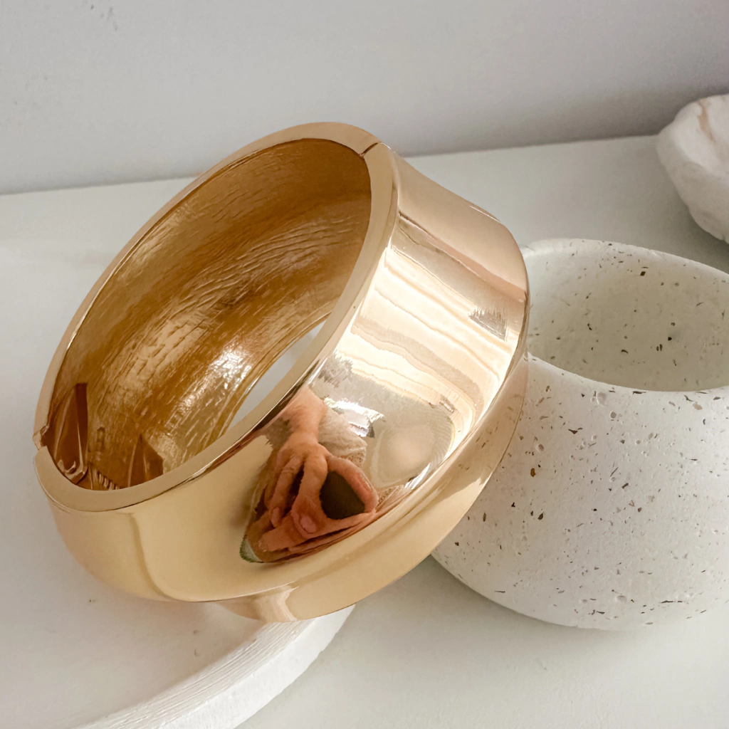 Com largura de 3,5 cm e diâmetro interno de 6 cm, o bracelete apresenta um encaixe perfeito no pulso e oferece conforto no uso. O fecho em mola garante praticidade, permitindo vestir e remover a peça com facilidade e segurança.
