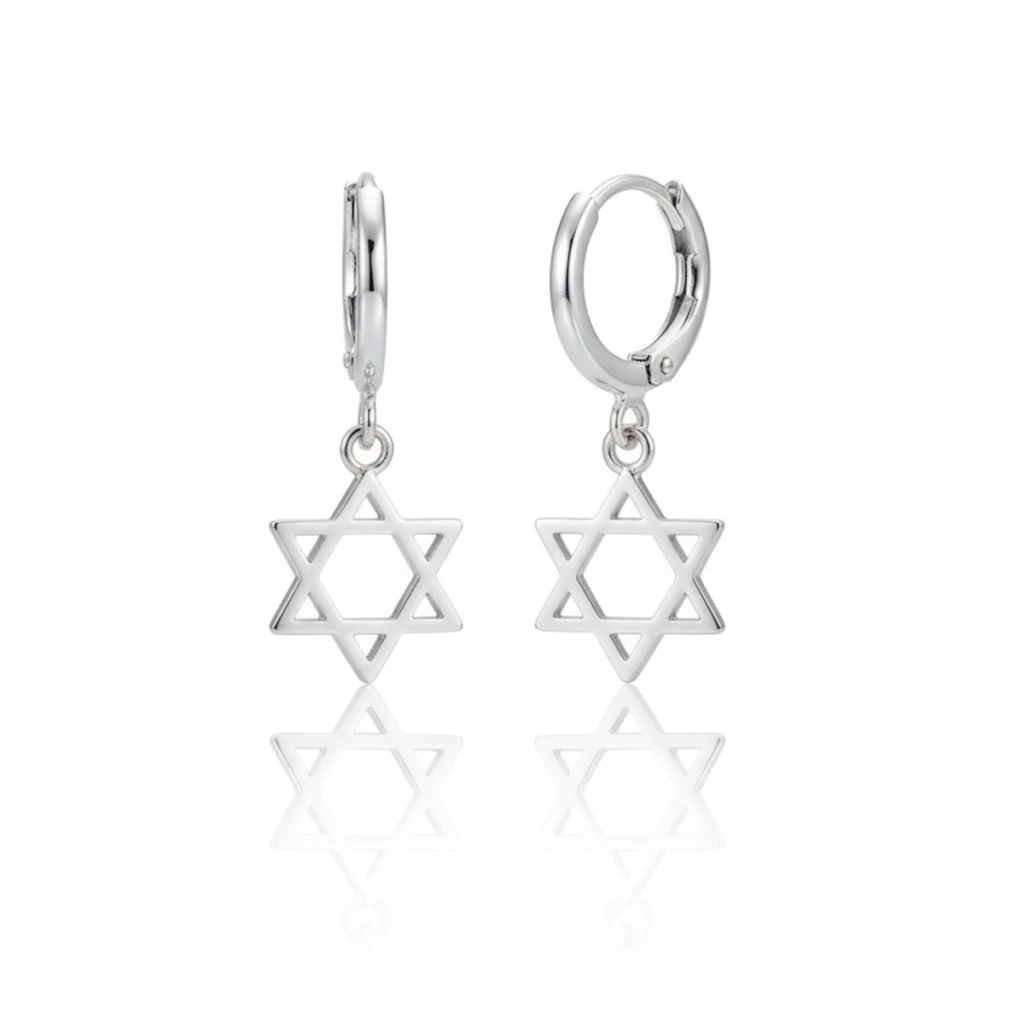 Uma peça leve, moderna e cheia de significado. A Estrela de Davi de 6 pontas, vazada e polida, reflete um brilho sofisticado e traz equilíbrio, proteção e espiritualidade ao visual.