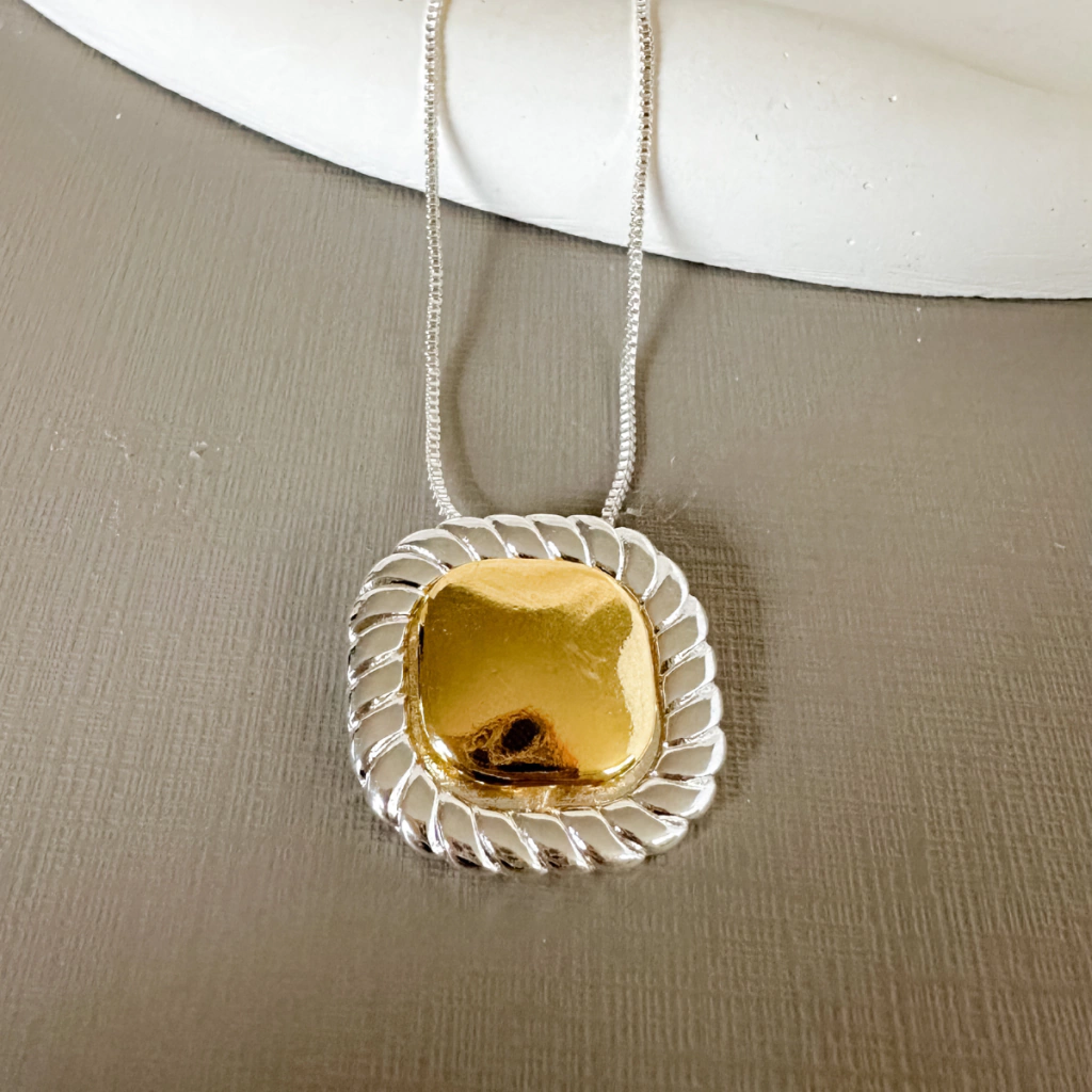 Colar: Pingente quadrado com borda detalhada | Medidas: 2,3 x 2,3 cm